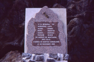 L’aspirant guide Dominique Caux, vingt-sept ans, eut tout juste le temps de prévenir les équipes qui suivaient leur trace avant d’être emporté avec quatre autres montagnards Alain Darre, vingt-sept ans, Daniel Guigues, trente ans, René Quentin, vingt-trois ans et Patrick Marie, vingt-quatre ans.