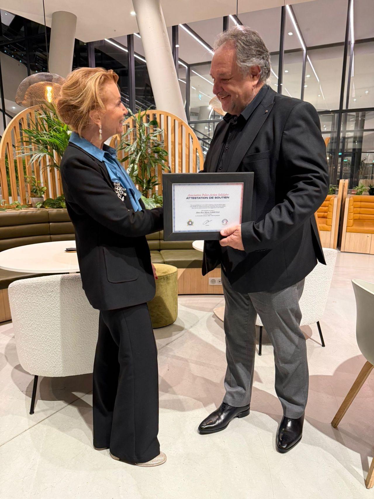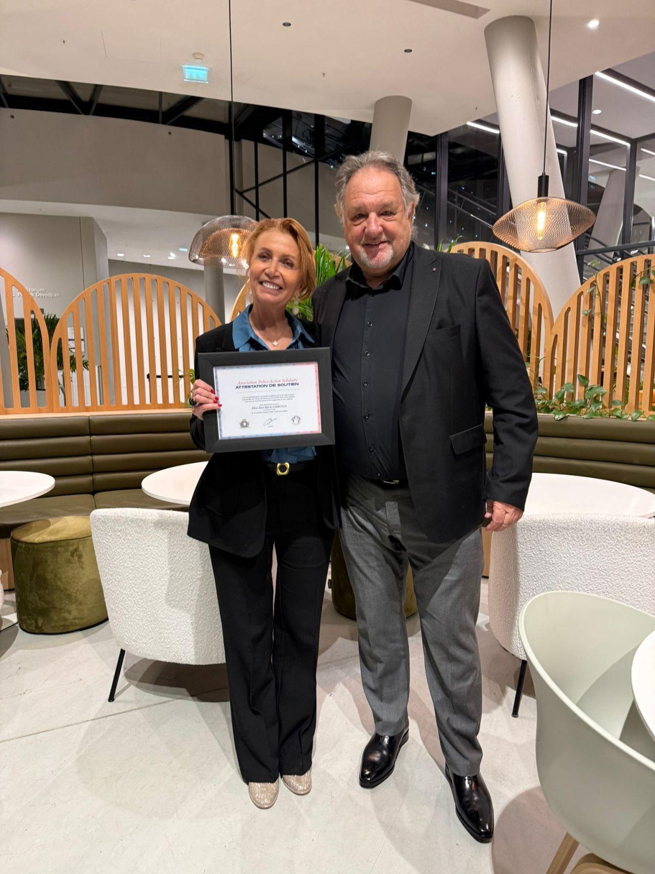 Michel WASSERFAL, administrateur de notre association, a eu le plaisir de remettre à Madame Rose-Marie FARRUGIA, Présidente Directrice du groupe Cercle des Voyages, son attestation en remerciement de son précieux partenariat à l’occasion de notre Grand Concert Hommage annuel.